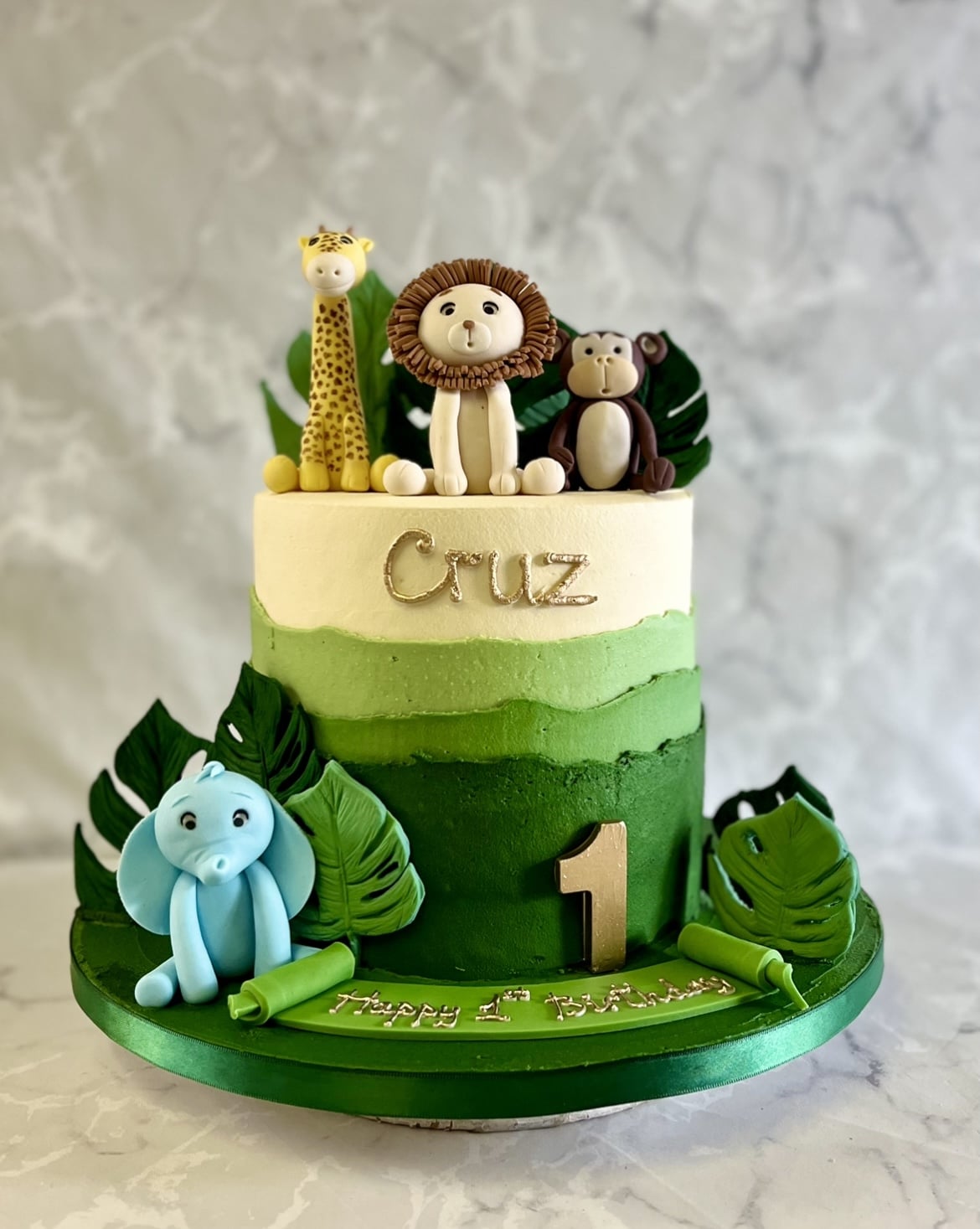 Jungle themed birthday cake with handmade sugar animals 5-7'' cakes stat at €420