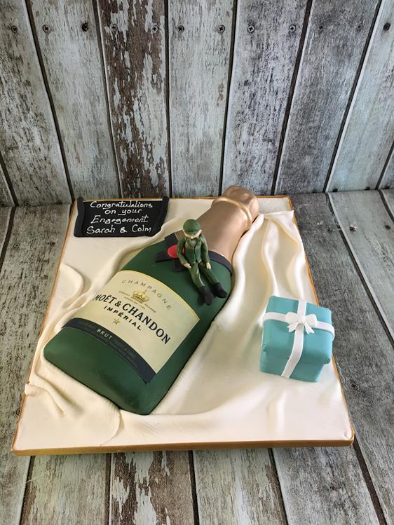 champagne cake with tiffany box and figure starts at €250 Chocolate biscuit €30 extra