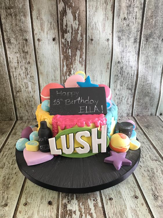lush beauty products birthday cake 6-8" starts at €250 chocolate biscuit €30 extra