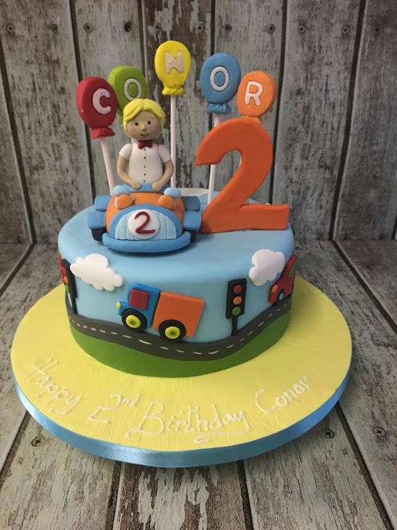 Boy in a car birthday cake 8" soft cake starts at €240 chocolate biscuit €30 extra