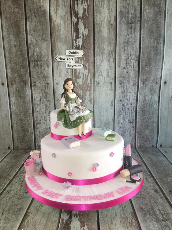 lady sitting on a chair birthday cake 8" starts at €220 chocolate biscuit cake €30 extra