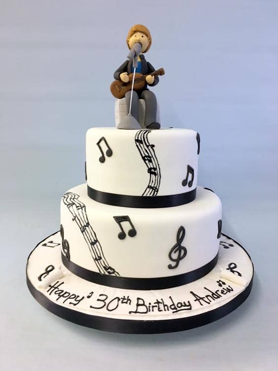 woman with a harp birthday cake starts 8" €220 chocolate biscuit cake €30 extra
