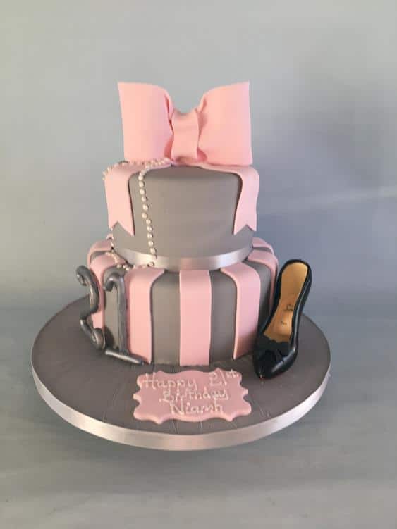 gold and silver bow birthday cake 6-8" start at €290 chocolate biscuit cake €30 extra per layer