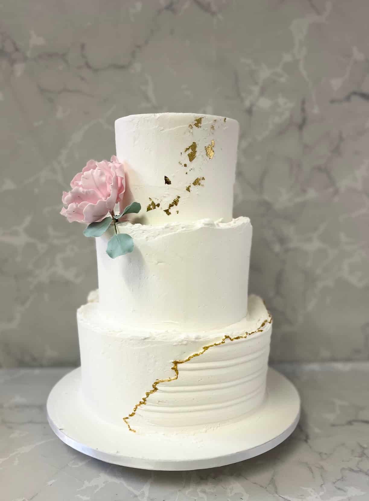 Over lapped buttercream wedding cake with gold and sugar Peony Rose 5-7-9'' cakes €750