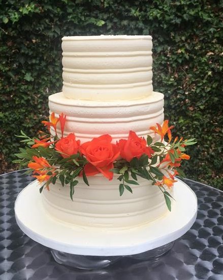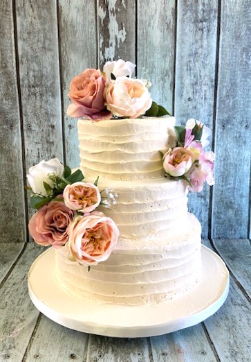 combed buttercream ornate design with silk flowers wedding cake 6-8-10'' cakes €650