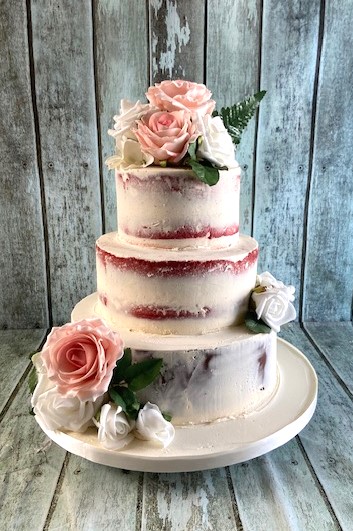 semi naked wedding cake with silk flowers 6-8-10'' €650