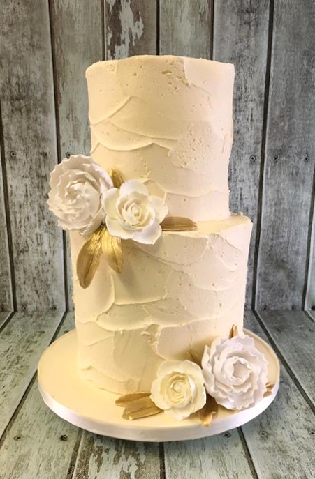 buttercream wedding cake and silk flowers 4 tiers high 6-6-8-8'' cakes €750