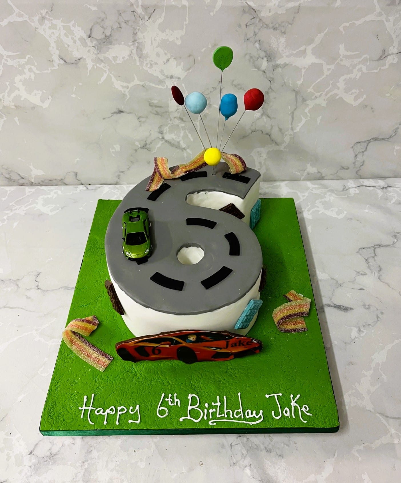 Race track  number 6 birthday cake number birthday cake starts at €190 chocolate biscuit €30 extra