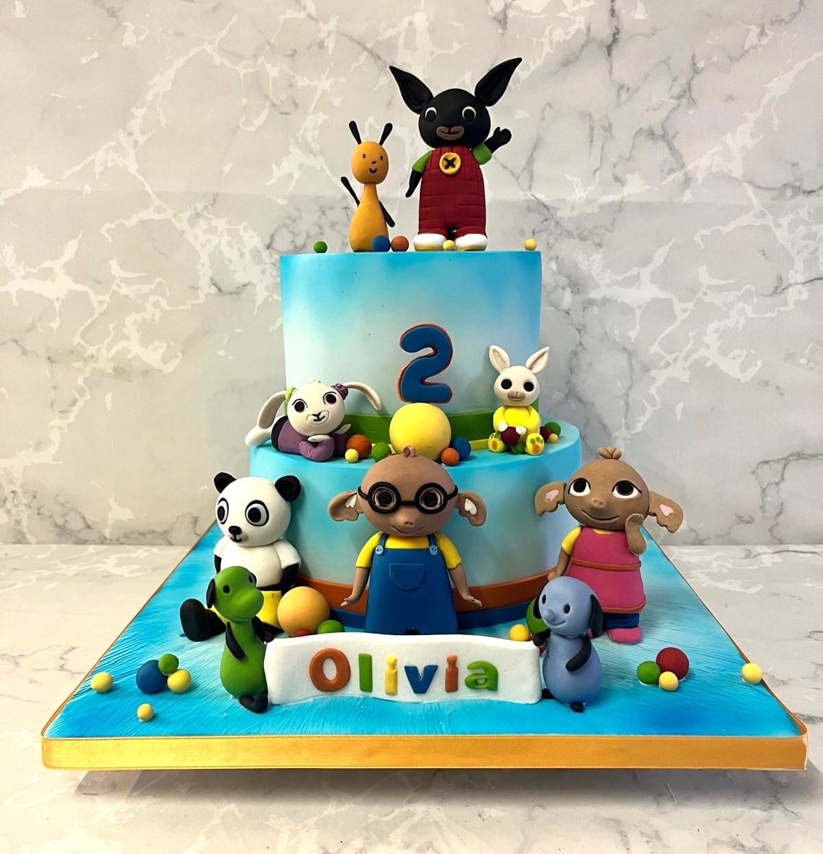 Bing Bunny Birthday cake Bing Bunny Birthday cake with all sugar figures 6-8" starts at €550 chocolate biscuit €30 extra per layer