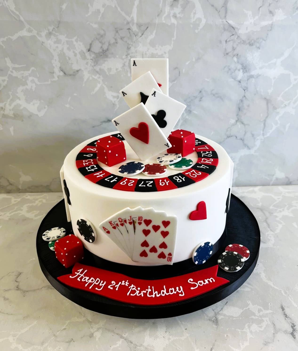 Poker style birthday cake Poker style birthday cake 8" start at €260 chocolate biscuit €30 extra