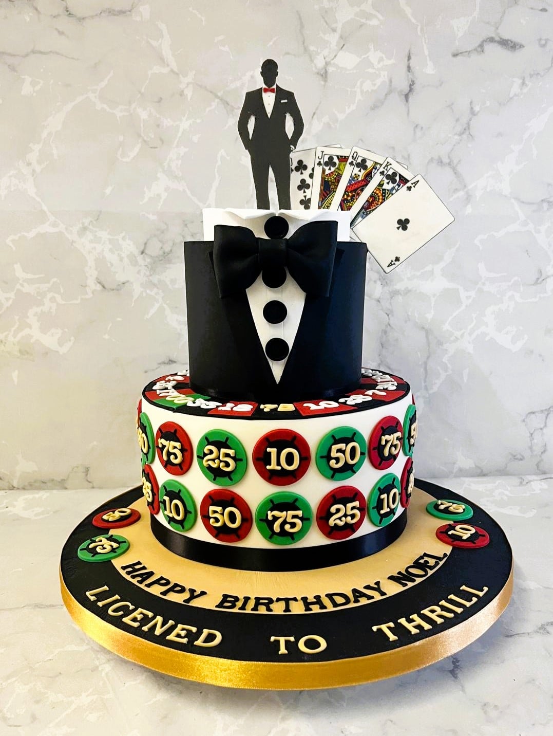 007 James Bond Casino birthday cake 7-8" cakes start at €350 chocolate biscuit €30 extra per layer