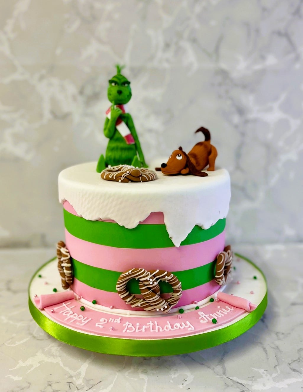 The Grinch Birthday cake 7'' starts sat €270 chocolate biscuit €30 extra