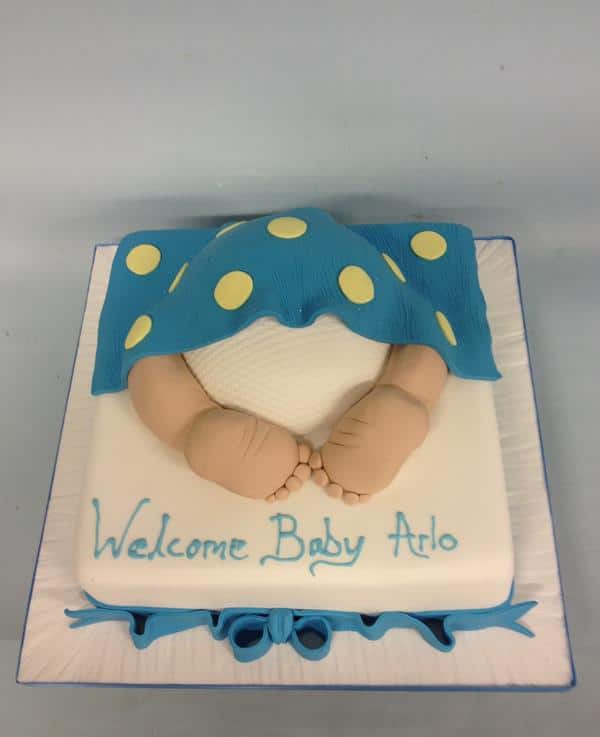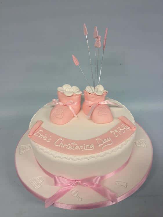 booties and banner christening cake 8" starts at €190 ,biscuit €30 extra