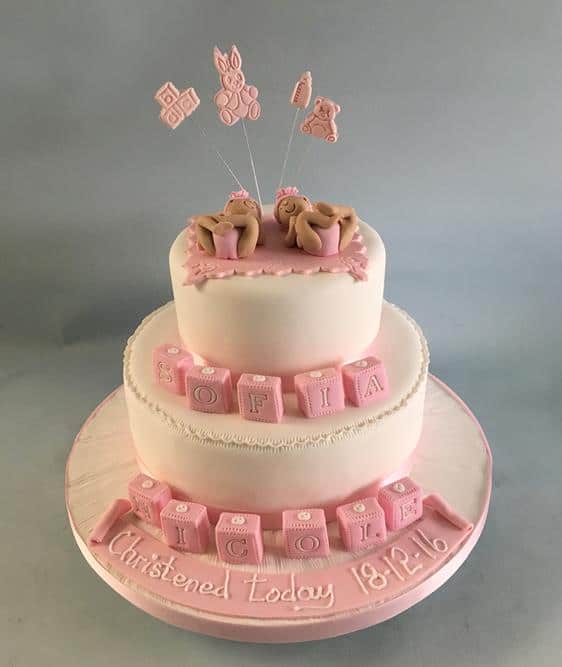 Christening cake for twins start at €330 for 6-8" soft cake Biscuit €30 extra per layer