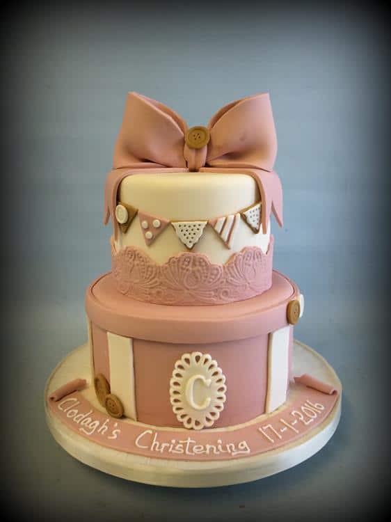 Vintage bow and lace Christening cake 6-8" €290 chocolate Biscuit €30 extra