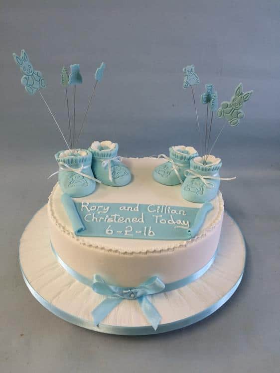 Christening cake for twins start at €190 for 8" soft cakes Biscuit €30 extra
