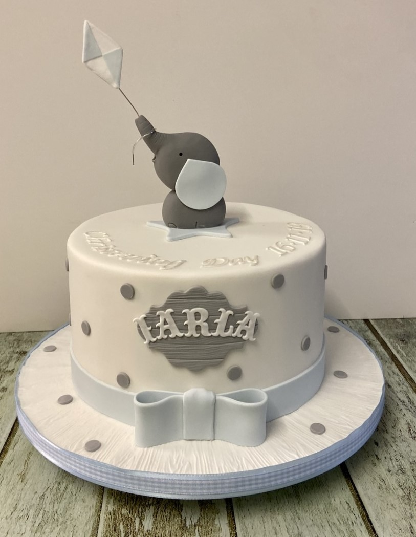 Elephant christening cake 8'' starts at €190 Chocolate biscuit €30 extra
