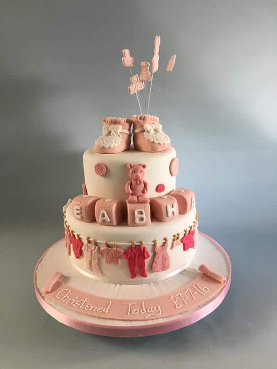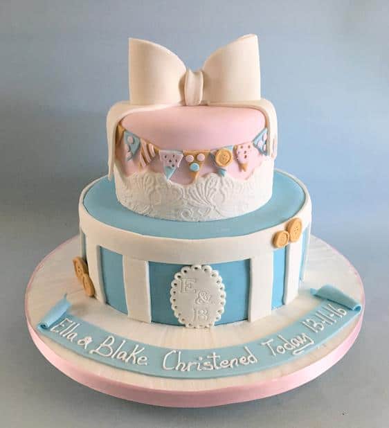 Pink and blue christening cake 6-8" soft cakes start €290 Biscuit €30 extra per layer