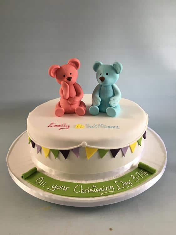 Christening cake for twins 8" starts at €220 biscuit €30 extra