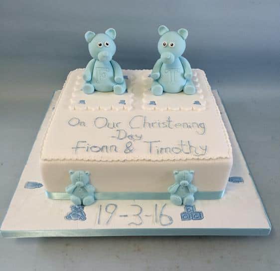 Christening cake for twins 8" soft cake starts at €250 Biscuit €30 extra per layer