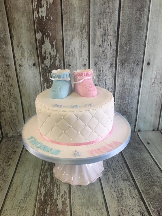 Twins Christening cake baby shower 8" starts at €190 chocolate biscuit €30 extra
