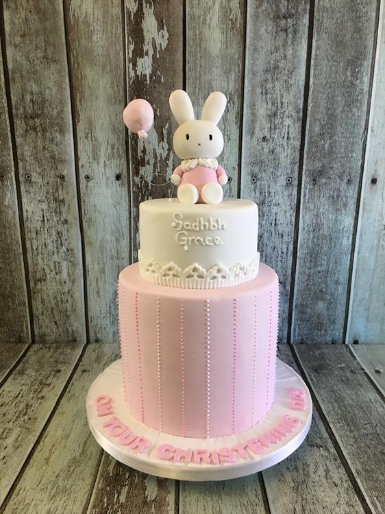 Rabbit Christening cake baby shower 4-6-6" cakes €290 chocolate biscuit €30 extra per layer