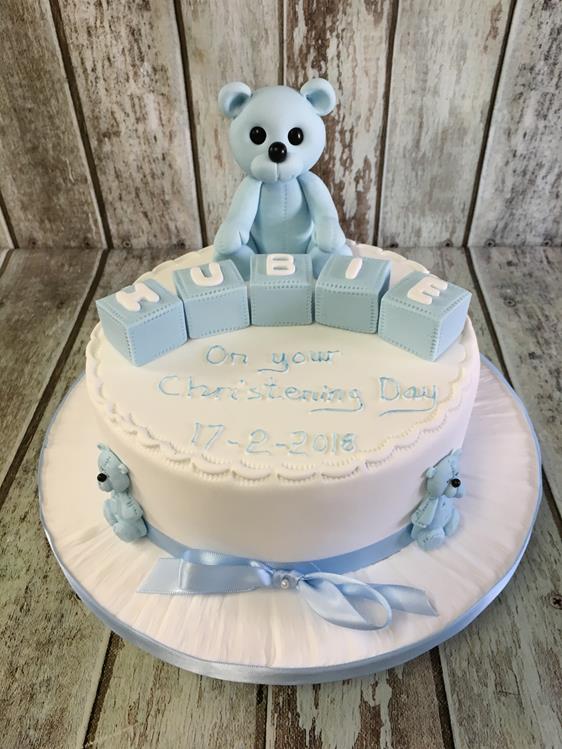Bear Christening cake baby shower 8" starts at €190 chocolate biscuit €30 extra