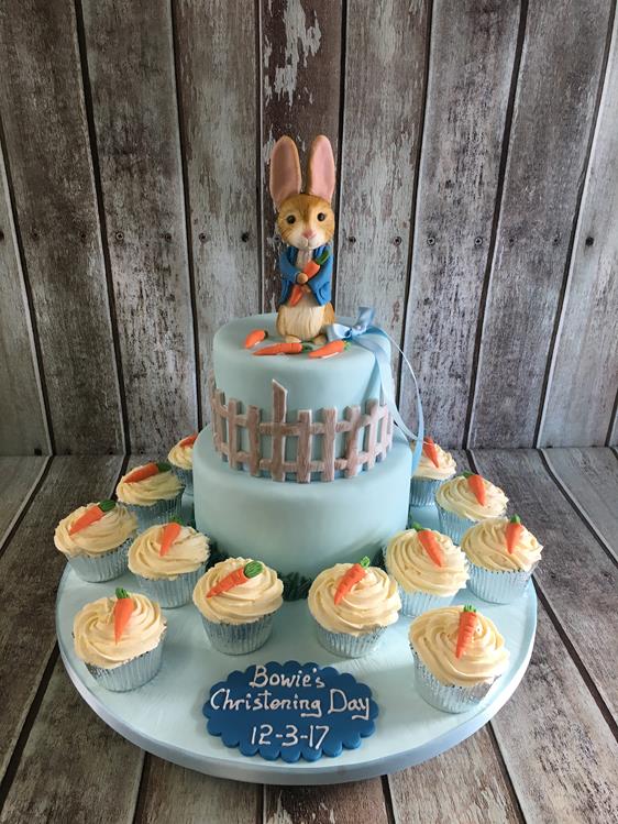 Peter rabbit Christening cake baby shower as photo 5-7'' cakes €350 chocolate biscuit €30 extra per layer