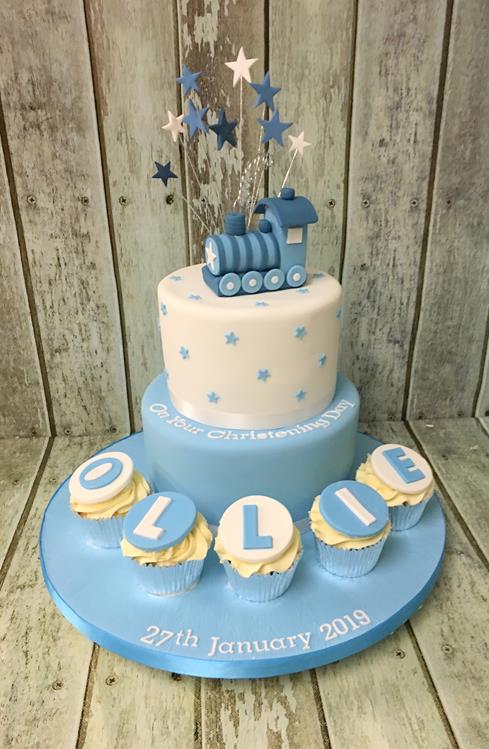 Train christening cake 6-8" soft cake €290 chocolate biscuit €30 extra per layer