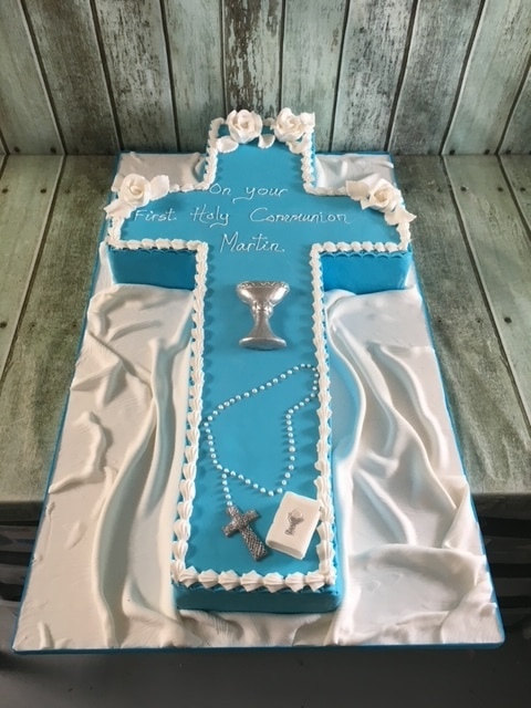 Large cross cake communion or confirmation starts at €250 on a 16'' cake board all sizes are available