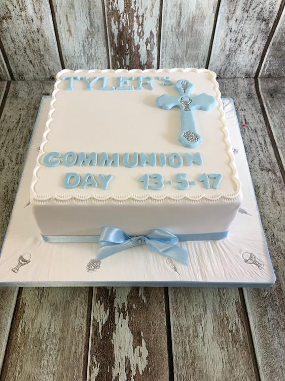 Communion cake for Harry 6-& 8" soft cakes €290 chocolate biscuit is €30 extra per layer