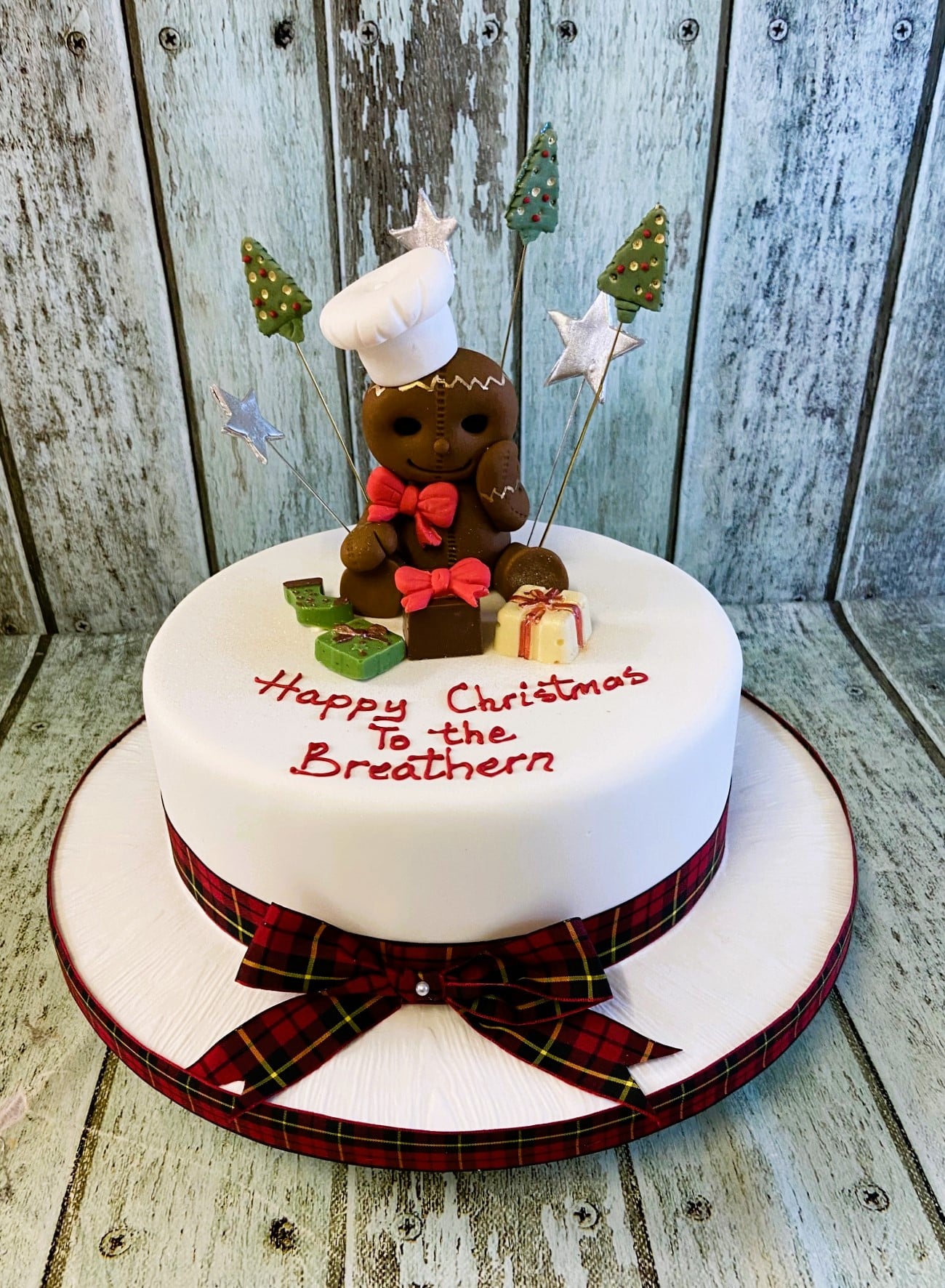 Christmas-cake-with-sugar-Ginger-Bread-man- Christmas cake 7\' starts at €150 chocolate biscuit €30 extra