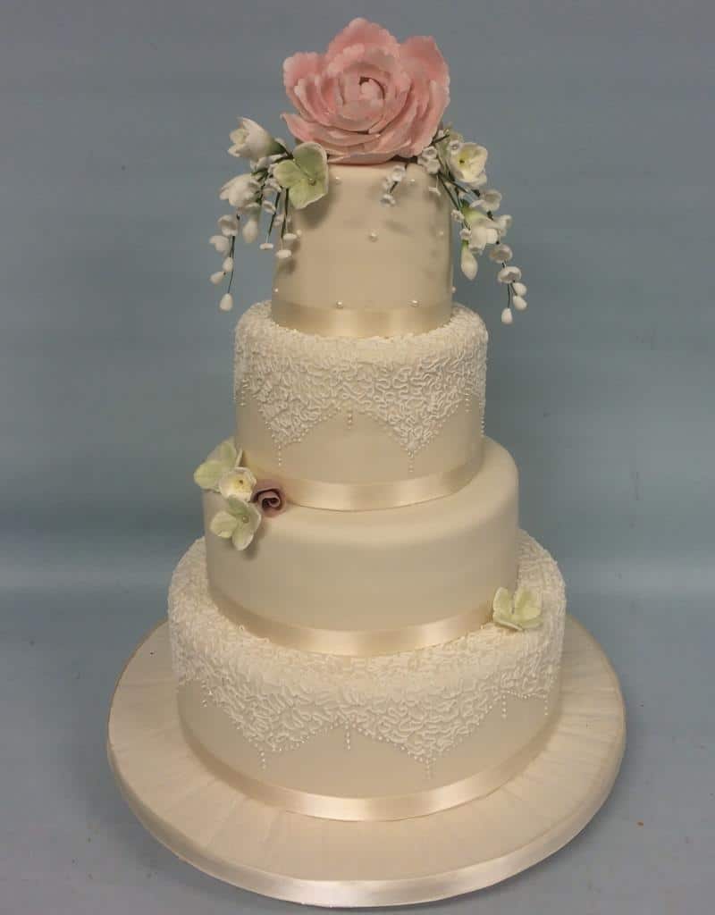 Wedding cake roses with pearls Carmel €390 6-9" cakes