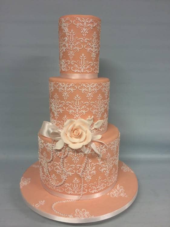 Coral Damask 4"-6-8" x double cakes €1,200 Wedding cake