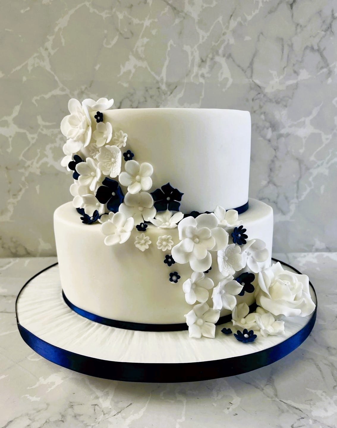 Delicate sugar blossoms 2 tier wedding cake 6--9'' cakes €450
