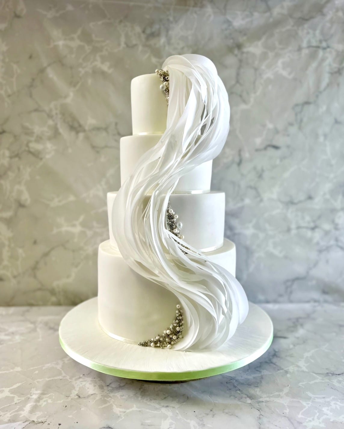 Wave of sugar paper and edible pearls wedding cake 4-6-8-10-10' cakes €950