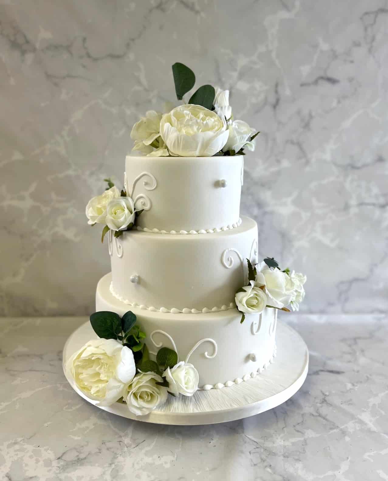 Royal icing hand piped pearls wedding cake with silk flowers 6-8-10'' cakes €590
