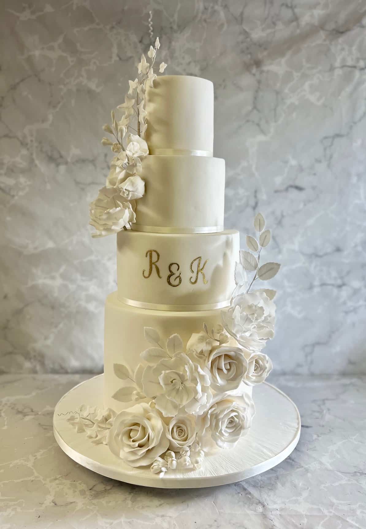 Tall wedding cake with oversized sugar flowers and ivy 4-6-8-10' cakes and 10'' fake €1,300
