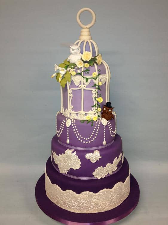 Owl vintage bird cage in shades of purple 6-6-8-10" €790