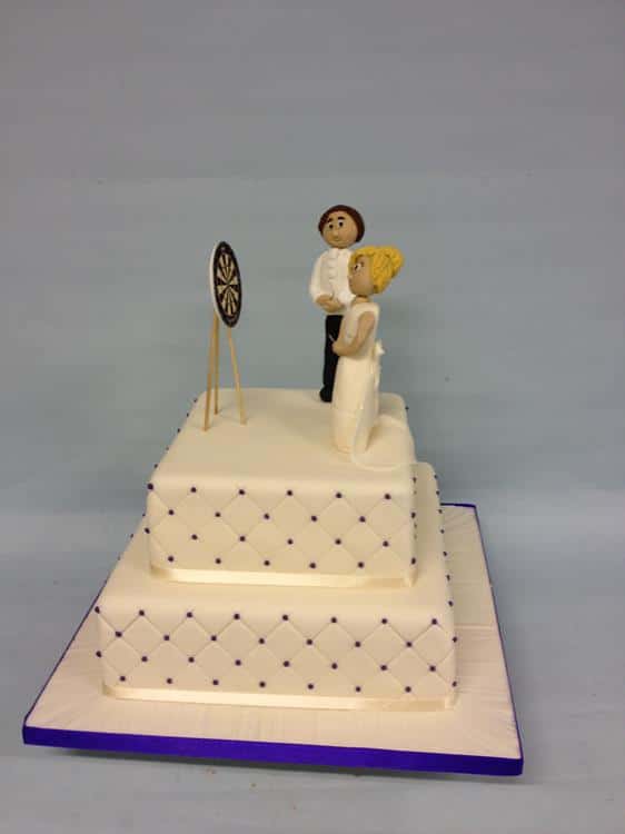 Wedding cake couple playing darts €650 6-8" cakes