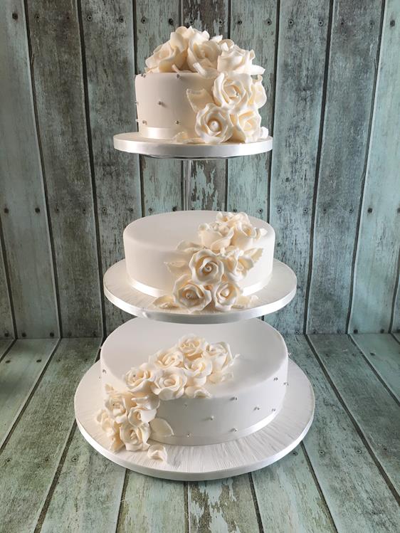 Roses wedding cake on a cake stand €750 6-9-12" cakes