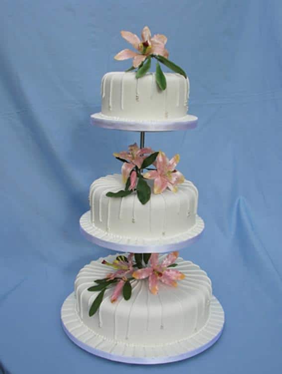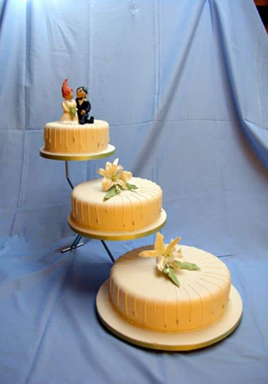 Tracey 3 x round shaped wedding cake on a stand €850 sugar figures included