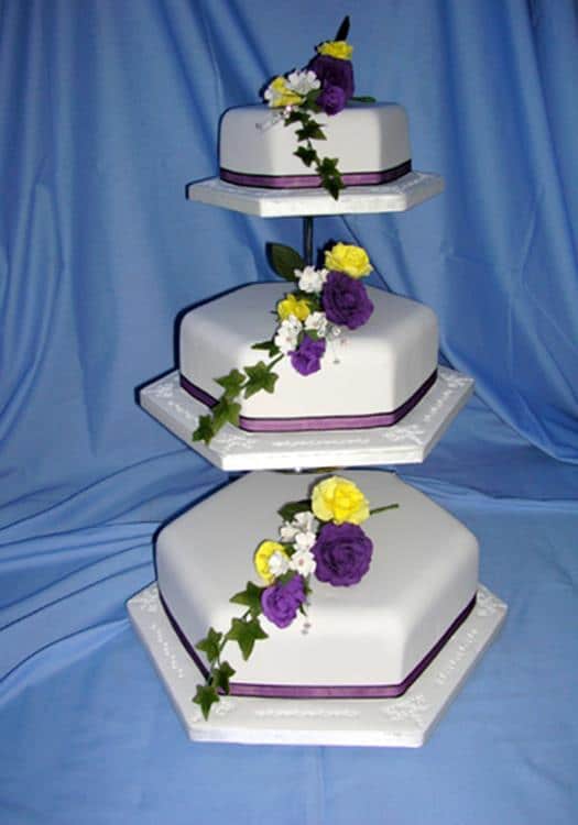 Stephanie 3 x hexagonal wedding cake on a stand 6-8-10" €790