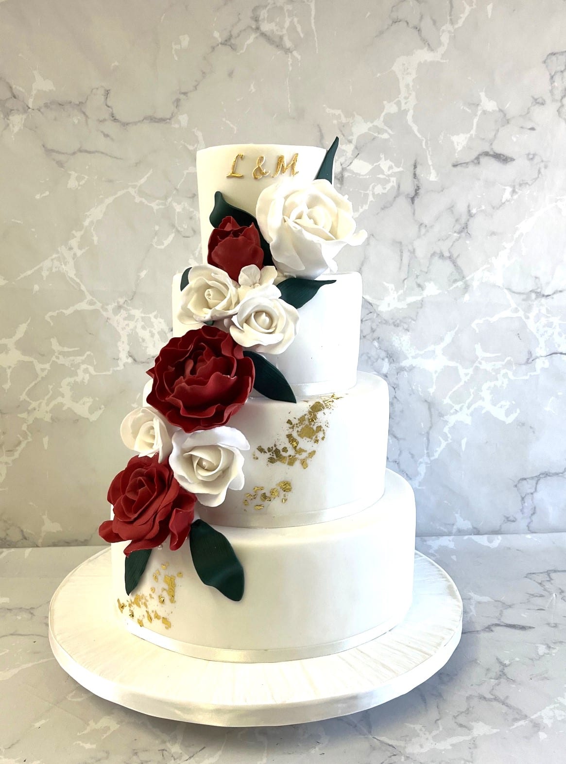 Lana's sugar roses with gold leaf and initials wedding cake 4-6-8-10'' cakes €820