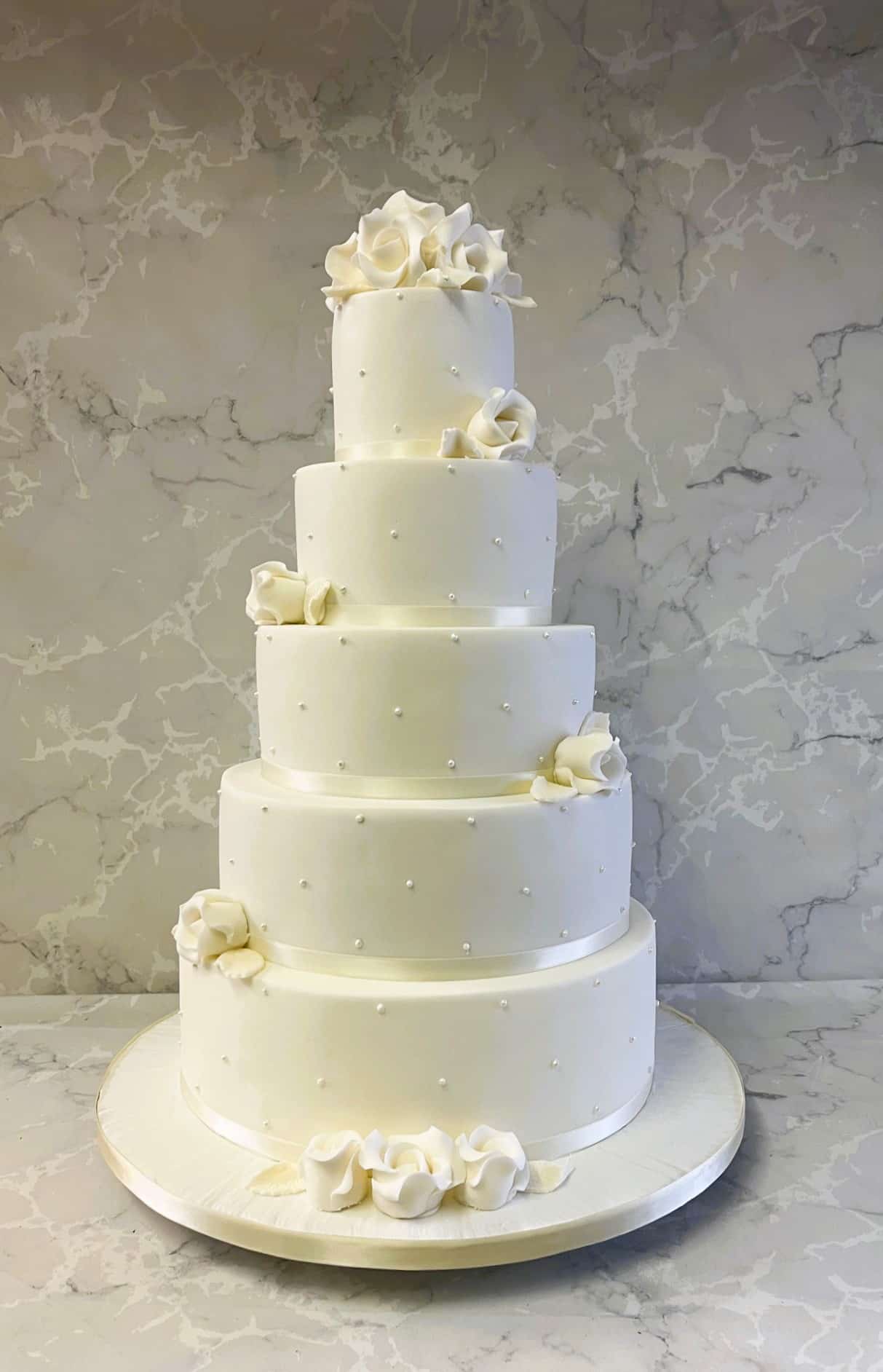 Single pearl and sugar roses wedding cake 4-6-8-10-12'' cakes €850