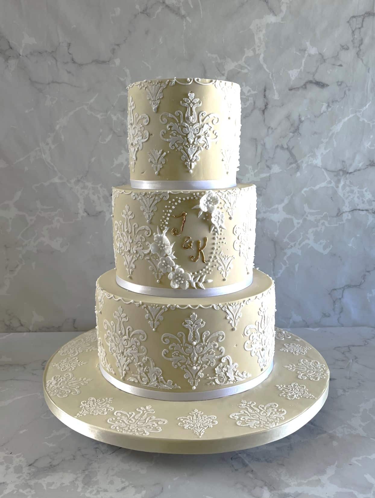 Damask wedding cake with delicate royal icing 5-7-9\'\' cakes €980