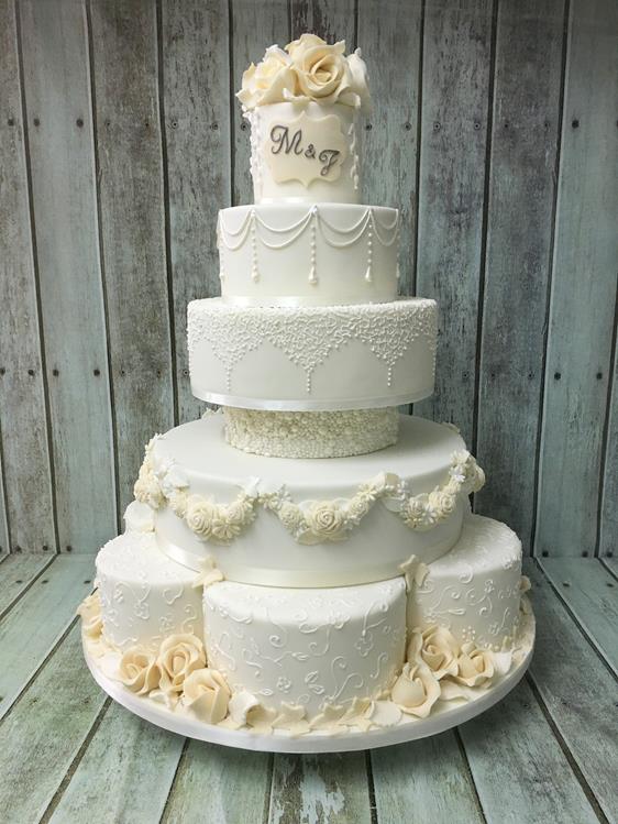 Large ornate wedding cake with a double height bottom tier 4-6-8-10-12-12'' cakes €1,300