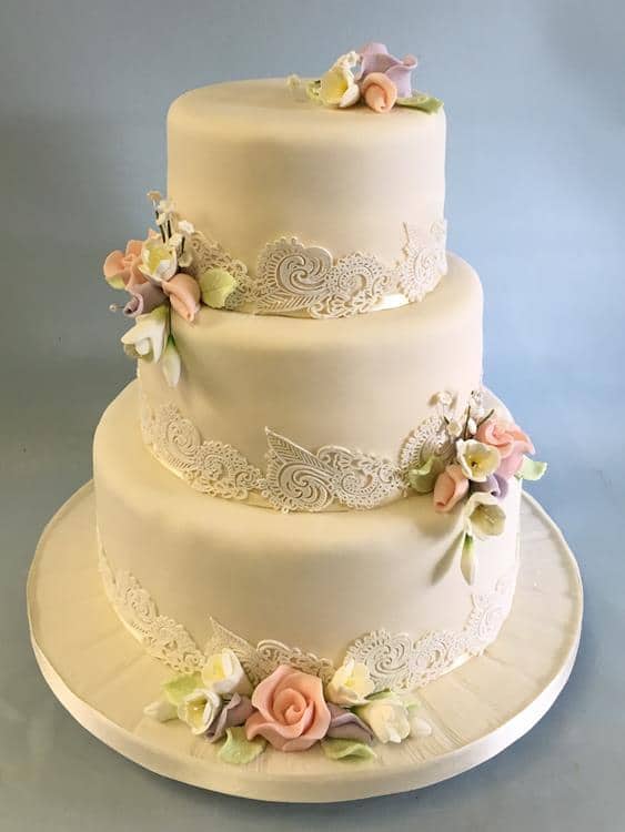 Jessica vintage lace and pearls €1,350 4-7-10-13 and 3x6 ''cakes