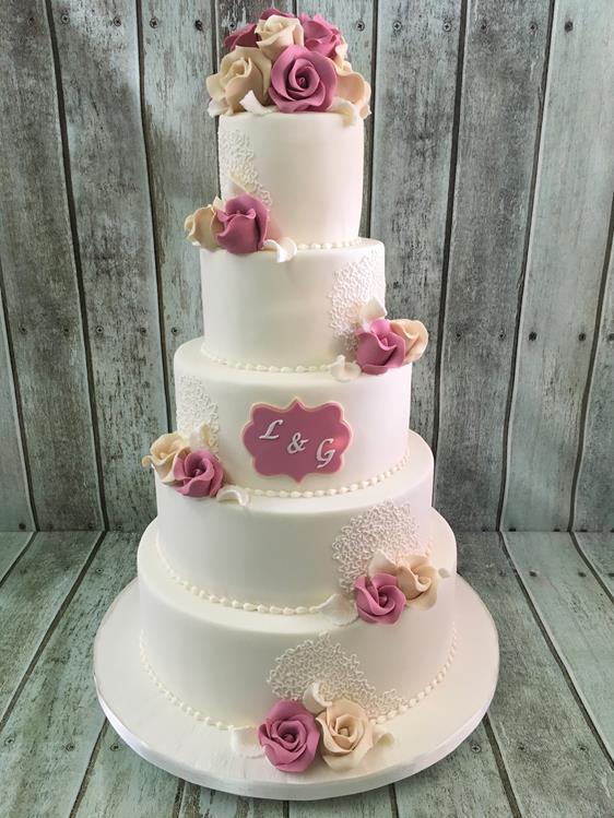 vintage rosettes and lace wedding cake €790 4-6-8-10" cakes