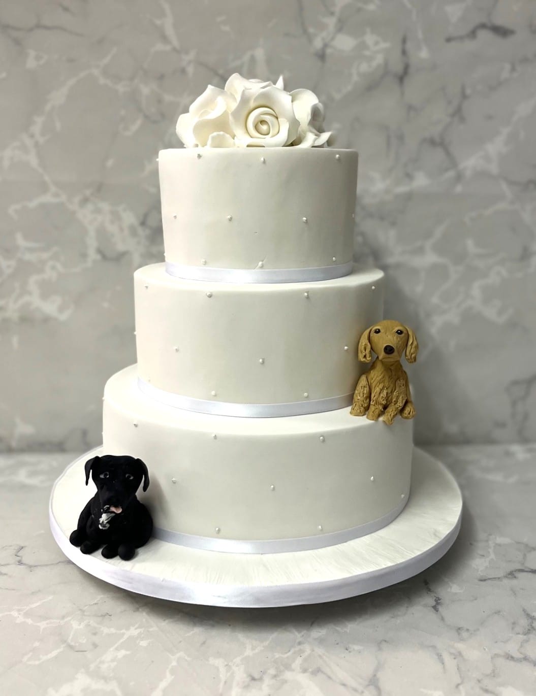 Delicate wedding cake with 2 sugar dogs 6-8-10" cakes starts at €720